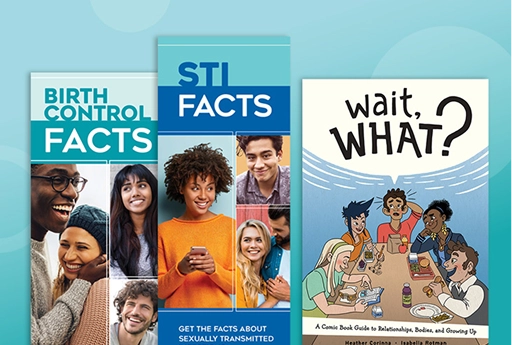 Check out ETR’s safer sex products made to help teachers, health workers, and youth programs teach sexual health in a way that’s clear and interesting. These include pamphlets, infographics, and interactive tools that cover topics like birth control, consent, and how to prevent STIs. These resources help teens learn important information, make smart choices, and stay safe.