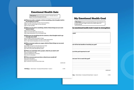 Did you know you can download free worksheets from HealthSmart, a customizable health education program for grades K–12? These worksheets help students think about how they show emotions in healthy ways, take a short quiz to see where they can improve, and set goals for their emotional health.