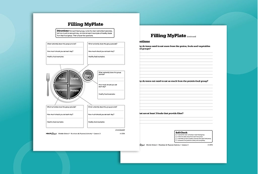 Learning about healthy eating starts with understanding the nutrients in different foods. HealthSmart is a customizable K–12 health education program that teaches students how to build healthy habits. One lesson includes a worksheet where you match nutrients to what they do in the body and where they fit in the five food groups. Click here to download the free exercises that include matching nutrients to their main function in the body and where each nutrient is within the five food groups.